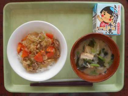 牛乳・開花丼・厚揚げと大根の味噌汁
