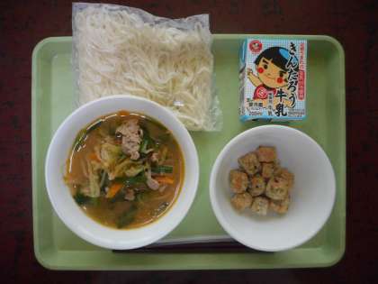 牛乳・チゲ風うどん・高野豆腐の琥珀揚げ