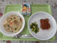 ごはん ふりかけ 牛乳  筑前煮 いわしのカリカリフライ