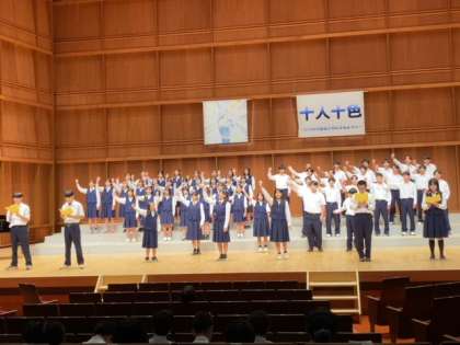 次は5組合唱と3年生有志合唱です。5組は「Believe」を手話付きで歌いました。途中から3年生も加わり、壮大なスケールの歌と手話のコラボ。胸が熱くなりました。そして3年生有志合唱、まずはトーンチャイムによる「Part of Your World」その後合唱「Chessboard」でした。この合唱は、10月28日に行われる地区中学校音楽会で再度歌います。