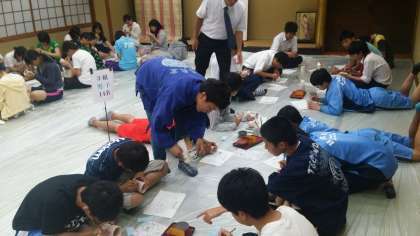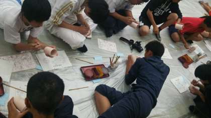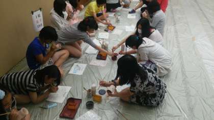 写真は、清水焼の絵付けをやっているところです。すでに下絵は美術の授業で完成してきているので、すぐに絵付けをはじめてます。出来上がりが楽しみです。鴎友祭での展示ができるといいですね。