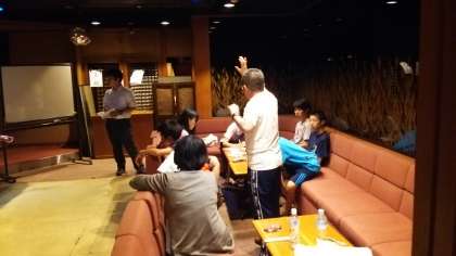班長会議の後半は、添乗員さんから、班にひとつずつ配られる携帯電話の使い方の説明と、明日の朝の具体的にするべき行動を、身振り手振りを交えて熱く語る植田先生の話です。通算13回目となる植田先生の修学旅行引率での経験値からのお話しは説得力があります。ちなみに私の修学旅行引率回数は、今回で9回目です。