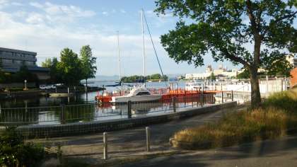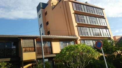写真は、朝食前の旅館を、琵琶湖側からとったものと旅館玄関です。今日はとてもいい天気です。これから暑くなりそうです。