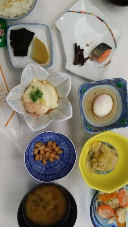 たっぷりのおかずに、私はごはんのおかわりはできませんでした。朝から満腹です。ふりかけは給食にも出るものと同じでした。