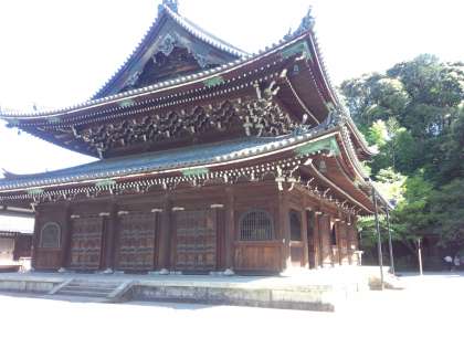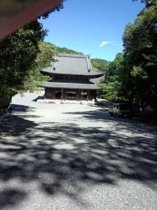 写真は、泉湧寺です。バス停から汗だくになって中学生と一緒に入口まできましたが、『下り参道』なので、門の所から見た中学生たちは中に入ってきませんでした。