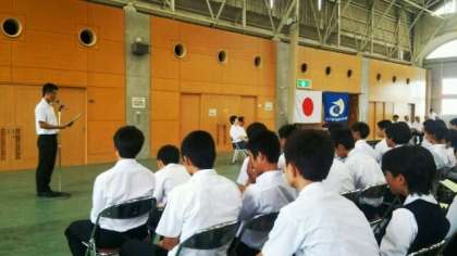 写真は、今日の午前中に行われた第8回小田原・足柄下地区中学校総合体育大会開会式の様子です。今年は「マロニエ」で行われました。