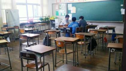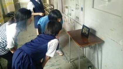 写真(上)は、3年2組前の廊下です。面談の待ち時間に見てもらおう…と、学級の様子の写真をたくさん撮った担任の稲澤先生が、デジタルフォトフレームを廊下に出してスライドショーで展示しています。修学旅行の写真から、普段の授業の様子、さらには稲澤先生の趣味の美術関係の写真まで、見ていておもしろい写真がたくさんありました。どのクラスもこのデジタルフォトフレームを置けるといいですね。残念ながらその予算はないので、結局は「教育は自腹から」と担任の先生の自腹になってしまう現実があります。