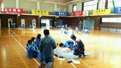 これで、3年生すべてのクラスでの「救命救急講習会」が終わりました。万が一に備えて、人を助けるすべを身につけることはとても大事です。でも、1度やったからといってすぐにできるものではありませんが、“こういう手順でやっていくのか…”ということがわかっただけでもこの講習会の成果です。