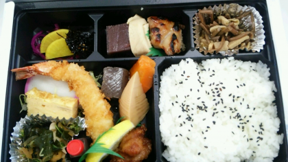 下の写真は、今日の校長先生のお弁当です。「出張先での弁当です。これで1000円。横浜は物価が高い!『つぶやき』に載せてもいいよ。」と、おいしそうなお弁当に対して八つ当たり気味のコメントを送ってきました。給食が食べられなかったことに不満そうです。(教頭)