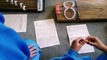さらに、座り方が違う男子生徒には「おい、45度だよ、45度!」と声をかけてくれたり、曲の途中で止まってしまう男子生徒には、「次はここだよ」と教えてあげる様子は、うしろから見ていて「2組も本当にいいクラスだなぁ」としみじみ感じました。