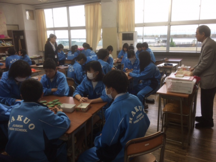 12月14日(水)、今日は学生ボランティアさんが授業のお手伝いに来ました。以前、このホームページで紹介しましたが、本校出身で現在大学2年生の教員志望の学生さんです。