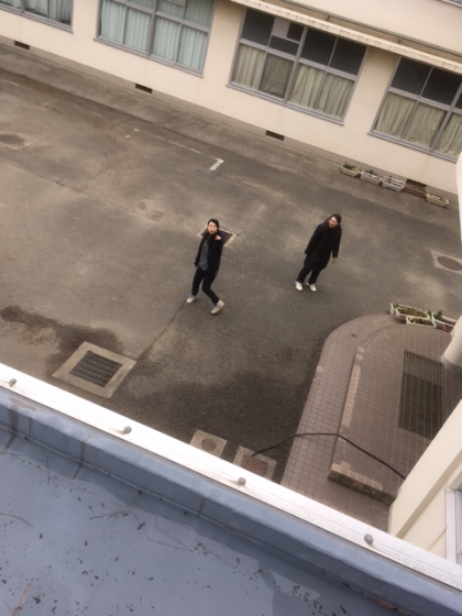 写真(下)は、たまたま通りかかった高野先生と武井先生です。特に高野先生は、「水しぶきが下の校長先生の車にかかった!」と、ここぞとばかりに指摘してきました