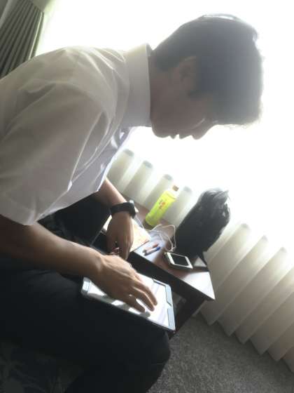 写真は本部で対応に追われる藤原先生です。外に出られずに寂しそうです。そこで、近くの晴明神社に行きたそうな気がしたので、ご褒美にお参りに行ってもらいました。一時間弱の“お許し”ですが、藤原先生は嬉しそうに出て行きました。