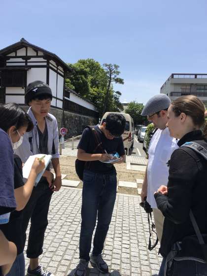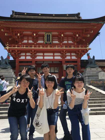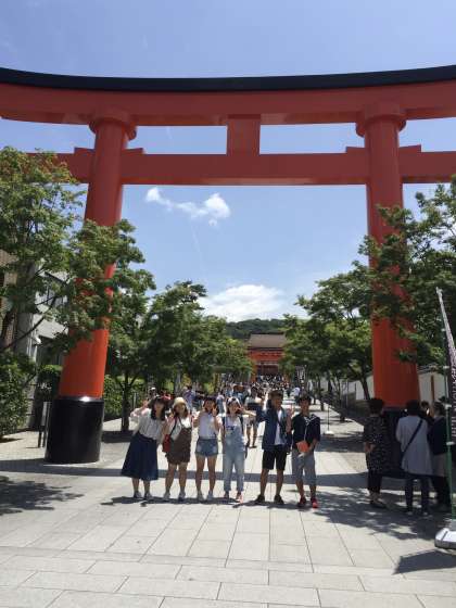 伏見稲荷のチェックポイントです。英語の課題で、外国からの方にインタビューしています。