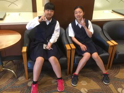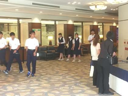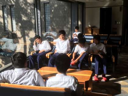 朝食開始の20分前に、最初の生徒が来ました(写真上)。その後、ぞくぞくと集まり、時間通りにみんな集合しました。