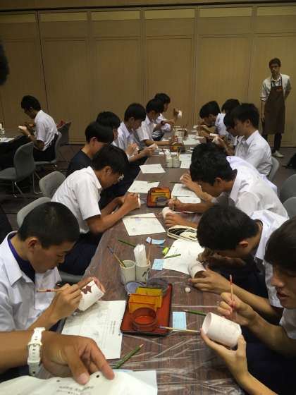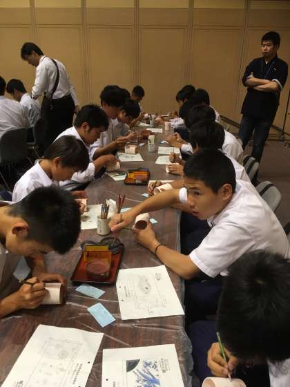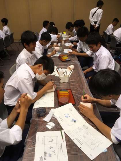 男子は、「俺は天才〜」と言いながら描いていたり、「オーイ、押すなよ!」と注意したりと、自分なりに集中して作業をしていました。