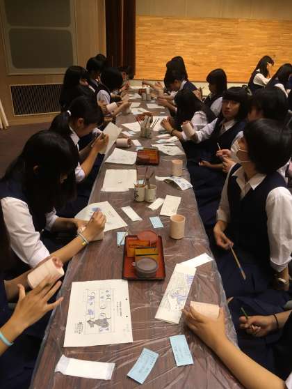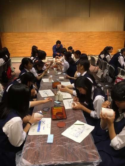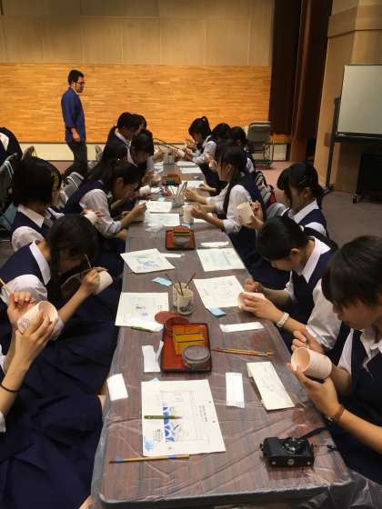 女子は、男子より5歳くらい精神年齢が高い別の団体のように、落ち着いた作業でレベルが高い絵付けをしていました。