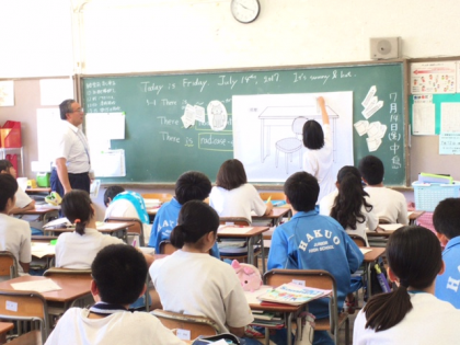今日の目標は、「There is/There areの存在構文の作り方を学び、文をつくる」ことです。川上先生の英語での問いかけに、生徒はよく考えて答えていました。予定していた“友だち同士で教え合いながら英作文を作る”ところまではいきませんでしたが、終始英語での会話のキャッチボールが展開されていました。