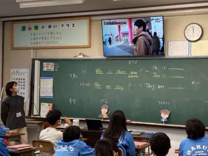 英語の授業では、動画を活用していました。体育館では楽しそうにバレーボールの授業が展開されていました。そして、数学ではPCとプロジェクターを活用していました。様々に工夫された授業を行うよう努力しています!