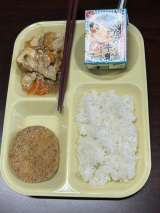 本日の給食のメニューは牛乳、ご飯、メンチカツ、生揚げの中華風煮です。メンチカツは...
