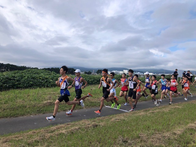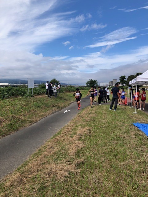 12日(日)には、酒匂川左岸サイクリング場において、地区中総体駅伝競走の部が開催され、白山中からも男女各チームで出場しました。