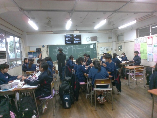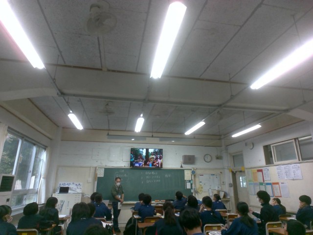 78910組では英語で数を聞いたり、答えたりする授業。1年理科では、バネを使っての力の伝わり方についての授業。1年社会科ではアフリカ州の課題について考える授業をそれぞれ行いました。