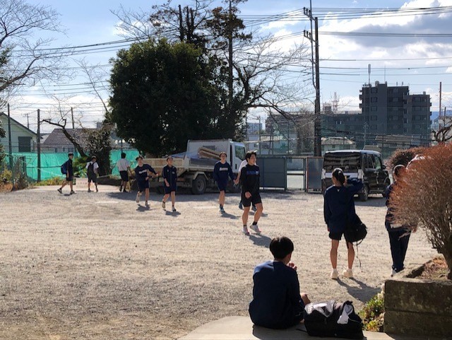 陸上部が、校外でのトレーニングの後、学校に戻ってきたところに遭遇しました。本校のグラウンドだけでなく、競技場も含めていろいろな活動場所で工夫して活動しています。