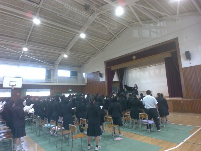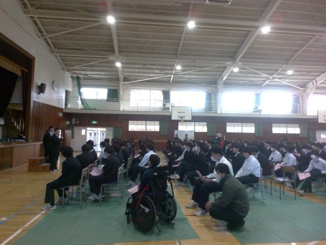 公立高校入学者共通選抜も終わり、3年生は特別日課に入るとともに卒業式の練習が始まりました。「どんな卒業式にしたい?」ということについて、生徒同士で話し合い、「メリハリのある卒業式にしたい」「感謝の気持ちを色々な人に伝えたい」などの意見がありました。