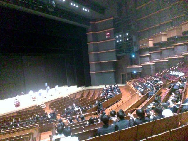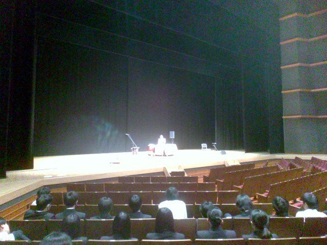 今回は、生徒のみなさんも和太鼓の体験し、会場のみんなで体験している生徒と手拍子で音を合わせて演奏することができました。日本の伝統文化である和太鼓や尺八、三味線の演奏を鑑賞することで日本文化への理解を深め、さらに実際の客席まで降りて、間近で演奏を聴くことができ、演奏を体感する良い機会となりました。