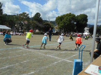 最後は全員リレーです。1年生から6年生までがバトンをつないで競争しました。得点は僅差だったため、この競技で決着がつきました。