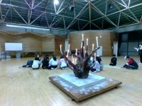 神奈川歯科大学短期大学部歯科衛生学科の方が、1年生に歯科保健指導をしてくださいました。第一臼歯は一番大きくかむ力が強い。他の歯をきれいに並べる働きをするけど、虫歯になりやすいなど紙芝居を通してわかりやすく教えてくれました。