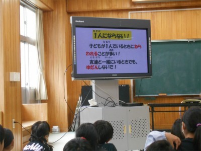 神奈川県警本部少年育成課の方を講師に迎え、1年生と3年生を対象に防犯教室を実施しました。この教室の目的は悪い人から自分を守るための方法を理解し、行動できるようになることです。映像資料では、危ない場所、知らない人が声をかけてきたら、車から声をかけられたときに立ち位置、SOS子ども110番かけこみ所、エレベータに乗るときの立ち位置、留守番をしている時の対応などを確認しました。