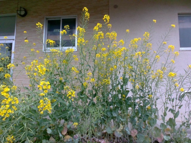 校庭の桜が満開になりました。体育館入口前の菜の花もどんどん成長しています。