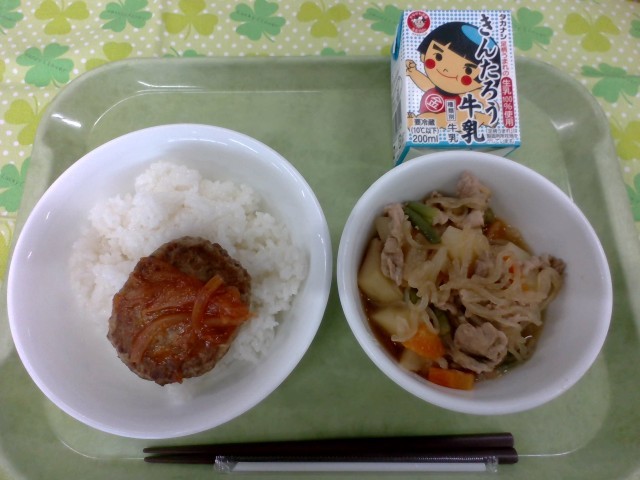 今日は、子どもたちに人気のハンバーグと肉じゃがの献立です。 しっかり食べて、元気に新学期を過ごしてほしいと思います。