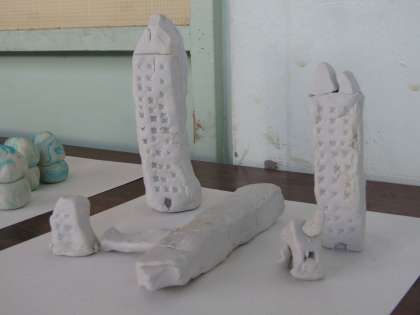 廊下にある図工の作品は「ねんどマイタウン」です。素敵な理想の街が作られていますね。