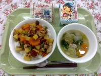早川小の給食メニューのマーボーどうふは、マイルドな甘口です。