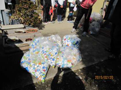 たくさんのエコキャップが集まりましたが、シールがはったままのものは、一つ一つシールをはがしたり、洗ってないものは洗ったり、形や大きさの違うものをより分けたりと、子どもたちはたいへんだったようです。でも、このエコキャップが世界の子どもたちのワクチンになるのだということを目標にがんばって活動してきました。