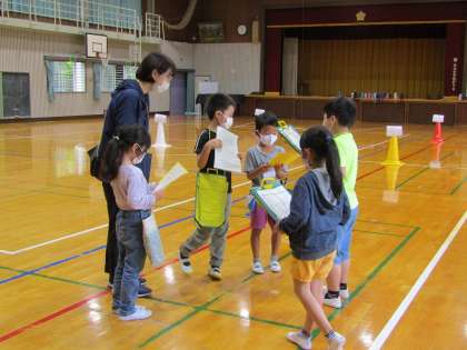 体育館を一回りするグループや、保健室を訪問しているグループもいますね。1年生にじょうずに教えてあげてくださいね。