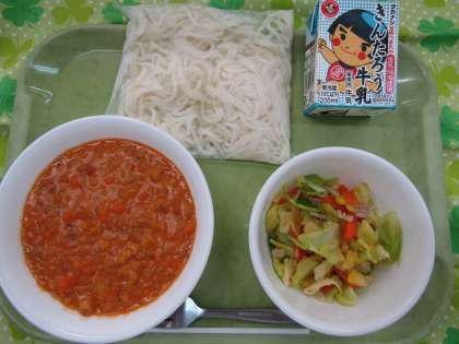 ミートソースに入っているチーズについて、お昼の放送で解説がありました。カルシウムが豊富な食品ですね。