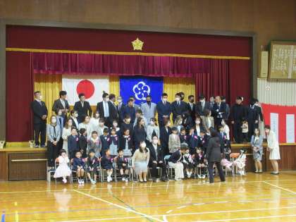 在校生を代表して2年生が参加し、お迎えのことばと歌を披露しました。