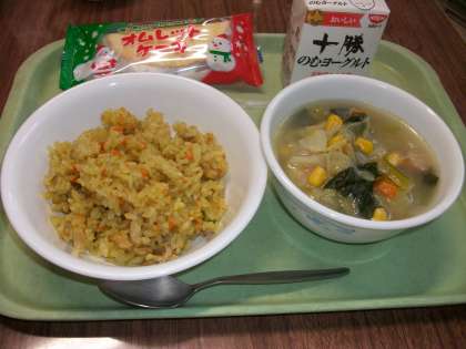 カレーピラフ やさいスープ のむヨーグルト オムレットケーキ・・・みんな大喜びでした