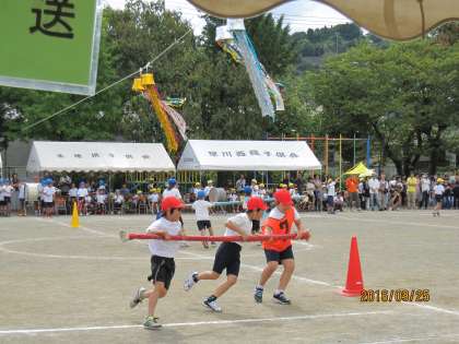 最後の得点種目は、上学年のリレーです。さすが上学年です。全力で走る姿に、下学年からの拍手と声援が送られました。