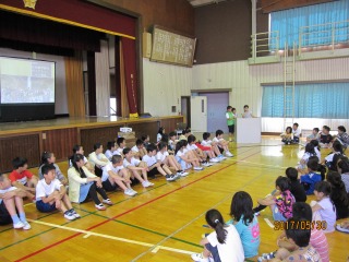 5月30日(火)に朝会がありました。明日から6年生が修学旅行に出かけるので、全校のみんなで「行ってらっしゃいの会」を行いました。5年生が中心になって進行してくれました。また6年生が安全に行ってこれるようにお守りを渡しました。修学旅行のみやげ話を楽しみにしています。