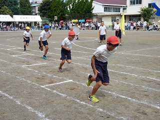 3、4年生による「空前絶後の80m」では、どの子も真剣に走る姿に感動しました。なかよし班種目「きずなとえがおでレッツゴー!」は、たてわり班の異学年チームで仲良く走りました。5,6年生の「引っぱってGO!」では、チームで協力して作戦を立てていました。