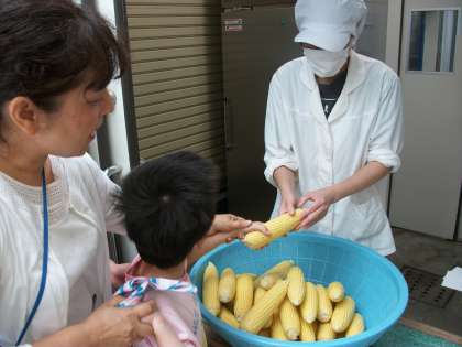 本日7/7に、1年生がとうもろこしの皮むきを体験しました。