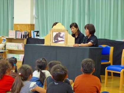 7月5日(金)の昼休みにカシュ・カシュ・クー・クーによるお話会がありました。年4回計画されているうちの2回目は夏のお話会でした。まず、「パンダのびっくりプレゼント」というお話、次に道徳の本の教科書にも載っている「橋の上のおおかみ」の紙芝居、そして、大型絵本の「パパお月さまとって」の読み聞かせをしていただきました。図書室は図書委員会の子、1・2年生、その他の学年のお話好きな子も含めると70名ぐらいの子どもたちが集まって盛況でした。カシュ・カシュ・クー・クーのみなさんありがとうございました。次回の冬のお話会(12/6)も楽しみにしています。よろしくお願いします。