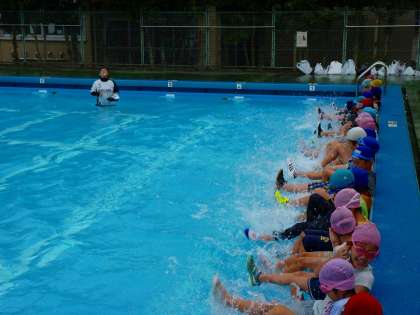 7月11日1・2年生(3・4校時)3・4年生(5・6校時)が着衣水泳を行いました。1・2年生は曇り空の中、元気な声が響いていました。3・4年生の時には小雨の時もありましたが、最後まで活動できました。学年ごとに指導内容は少しずつ違いますが、服を着ている時の入水は普段とは違うこと、疲れないためにはどうするかなど、自分の命を守るために必要な学習として取り組んでいます。