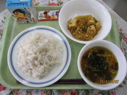 むぎごはん ふりかけ なまあげのそぼろに むらくもじる 牛乳・・・むらくもじるとは、溶き流した卵が汁の中に広がり、それが空にたなびく「むらくも」のように見えることからついた名前だそうです。とてもきれいで目でも楽しませてもらいました。
