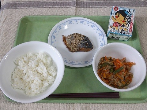 「今日の産地をお知らせします。牛乳…神奈川県、さわら・・・韓国、もやし・・・山北町、にんじん・・・北海道、しょうが・・・高知県です。」