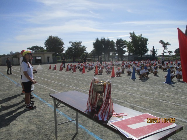 1年生がはじめの言葉を行い、そのあと優勝杯返還。教頭の話のあとに、誓いの言葉。